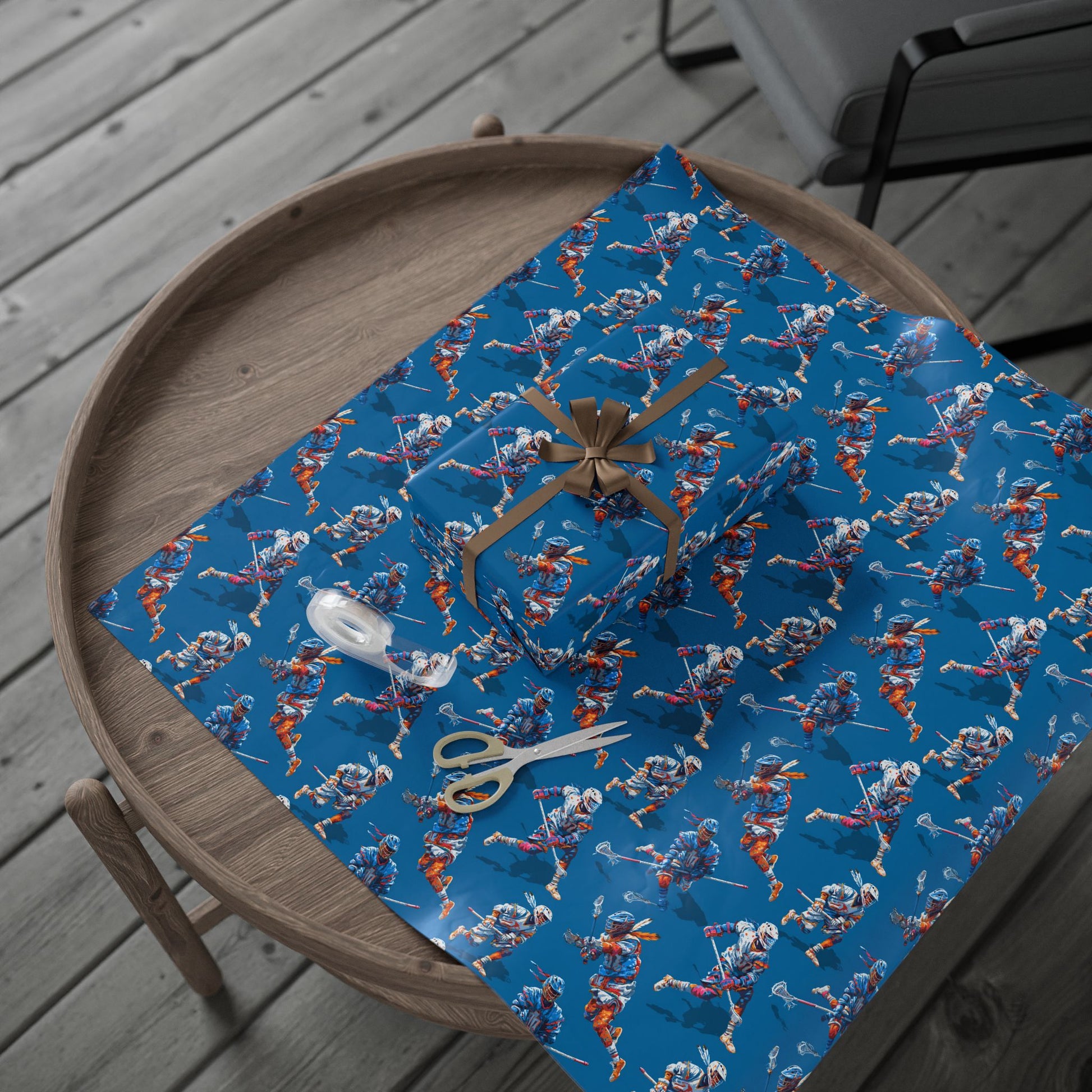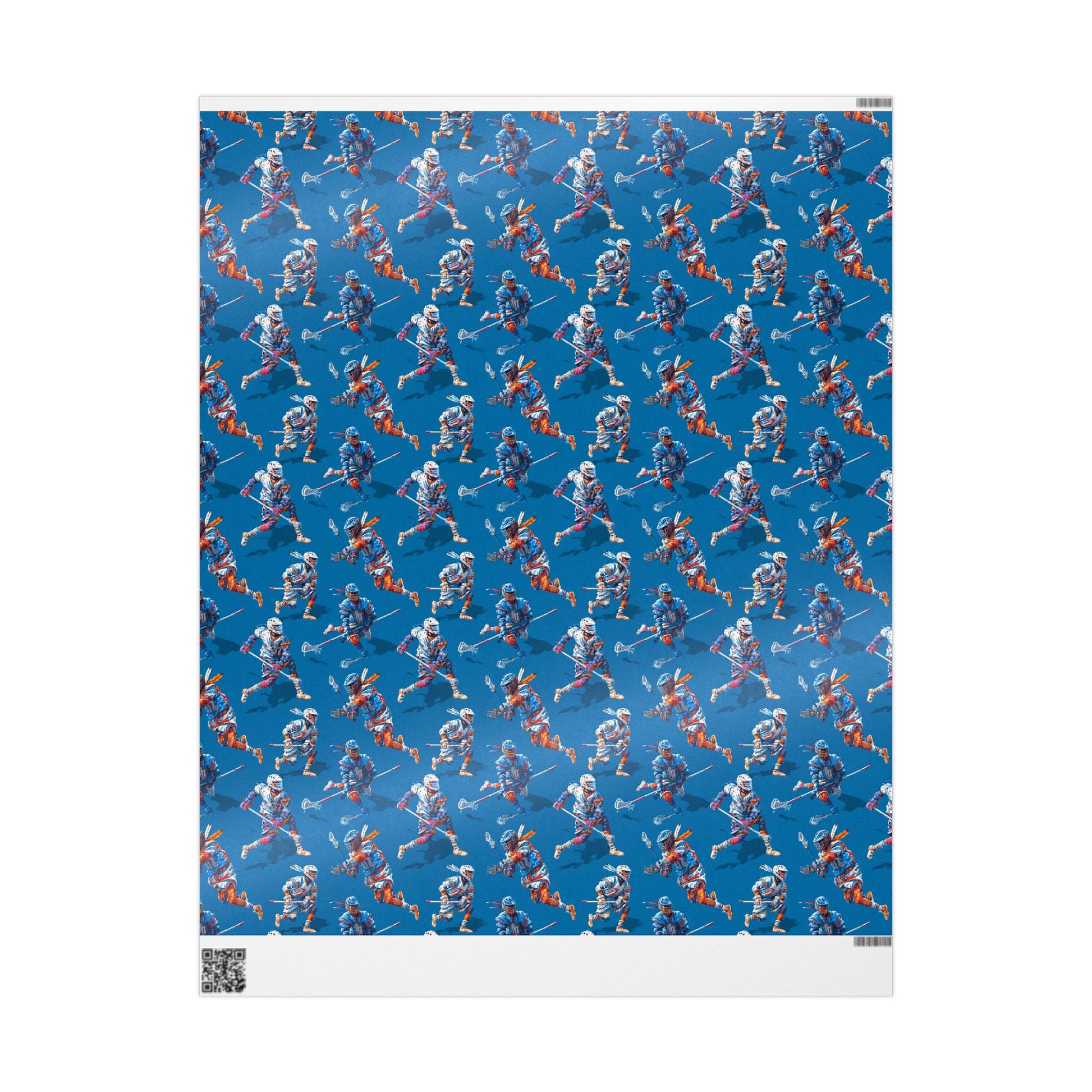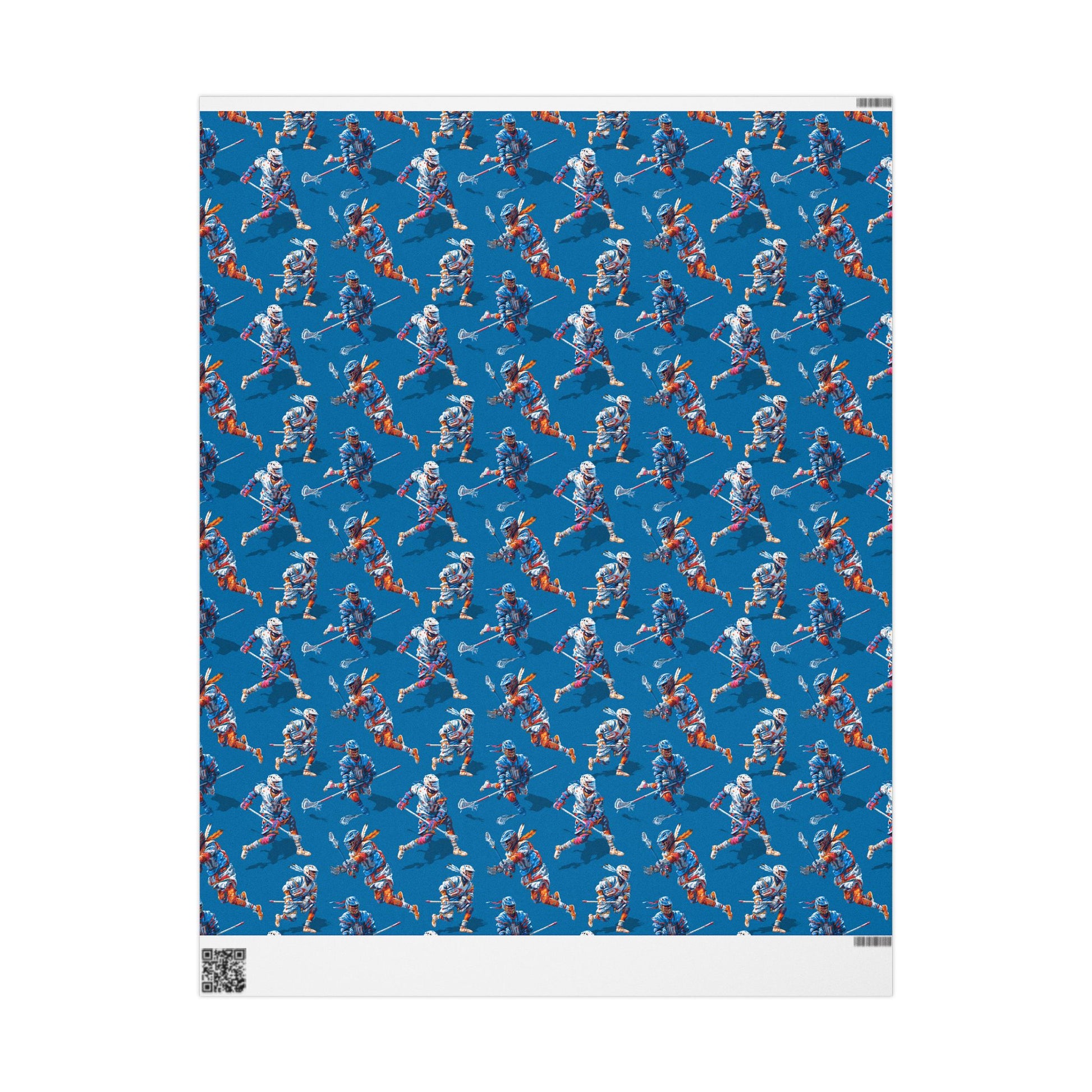 An electrifying pattern of lacrosse players in motion, captured with bold color and kinetic energy.