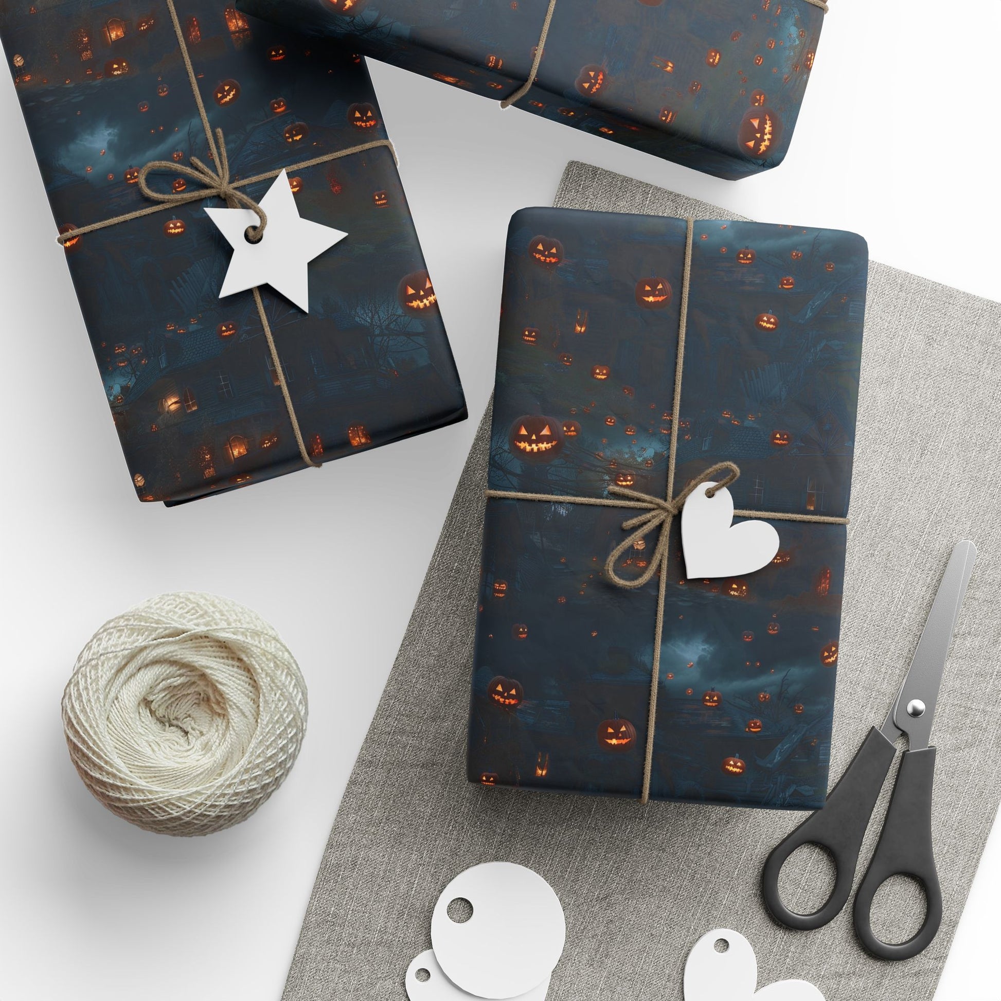 The dark, misty setting creates a perfect Halloween atmosphere filled with spooky charm.