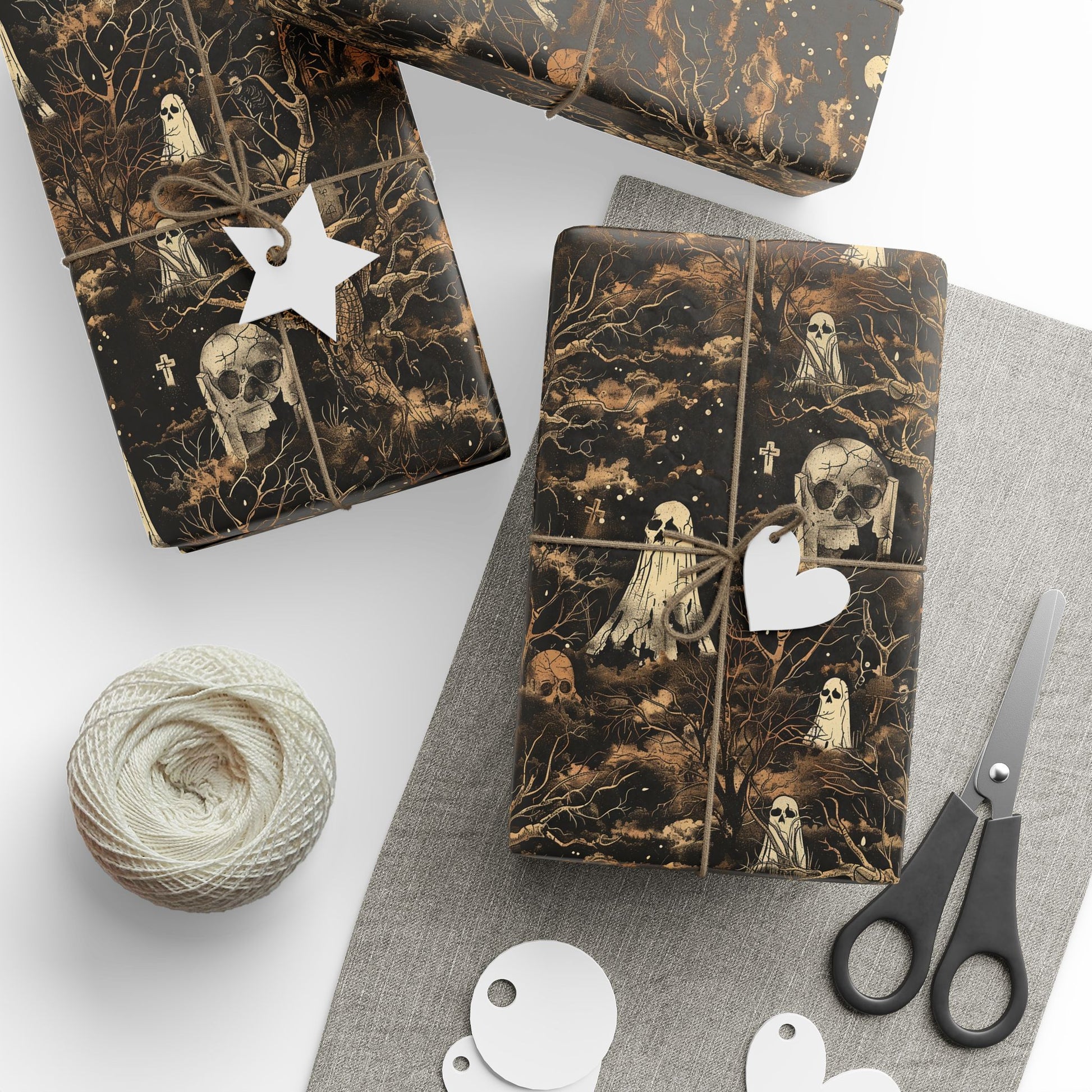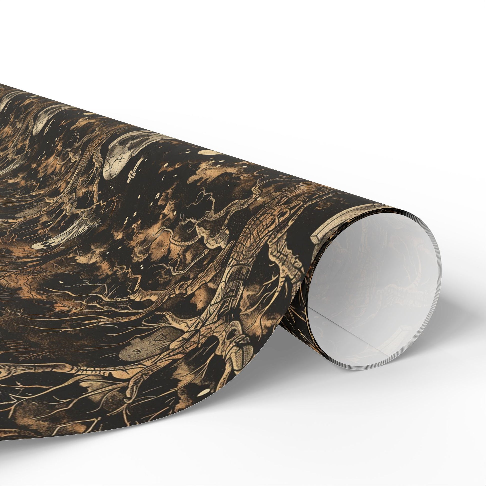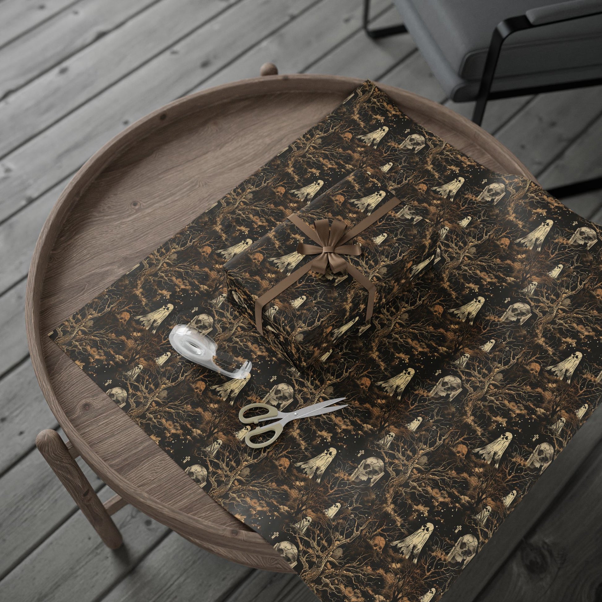 Perfect for Halloween, horror fans, and those who appreciate unique and creepy gift wrap designs.