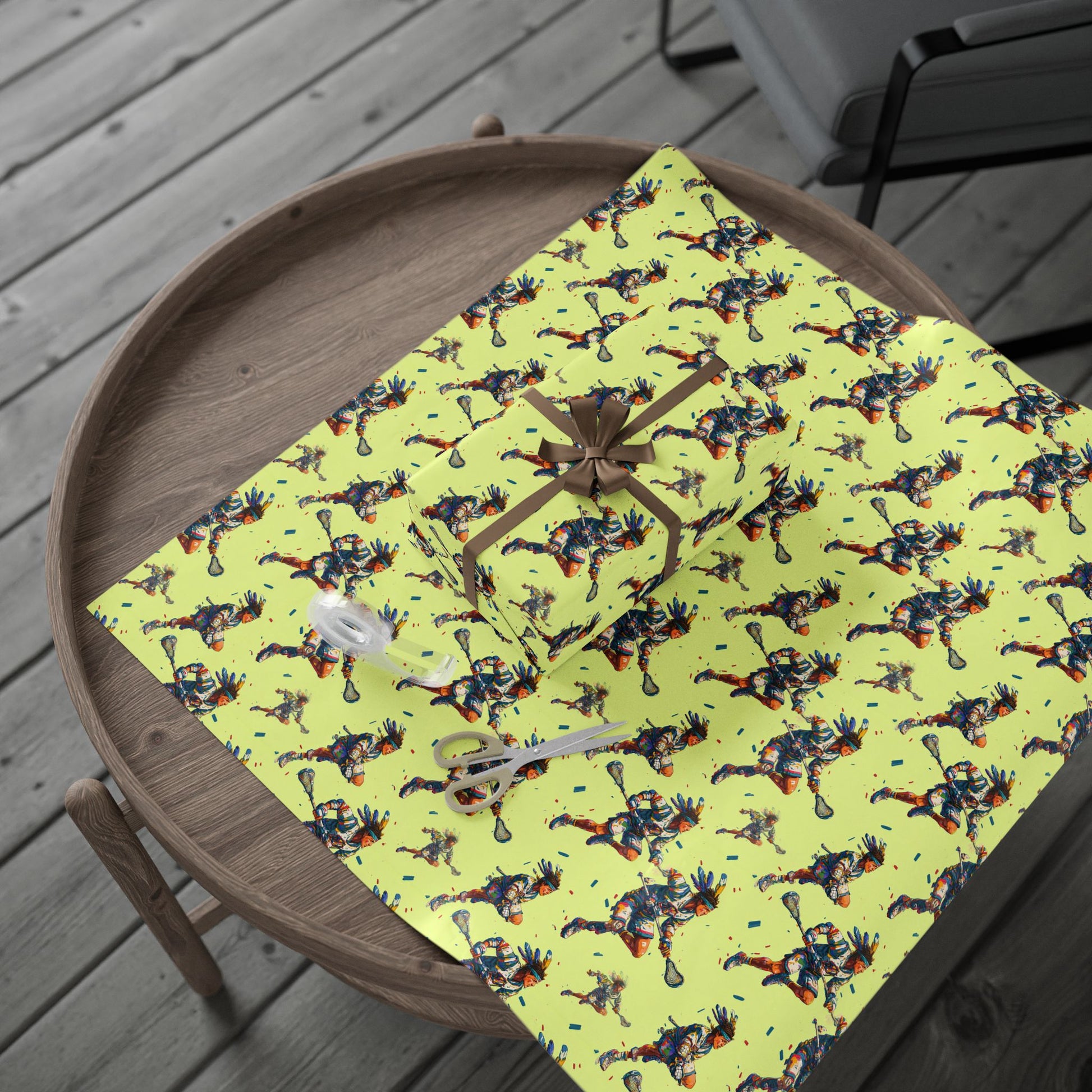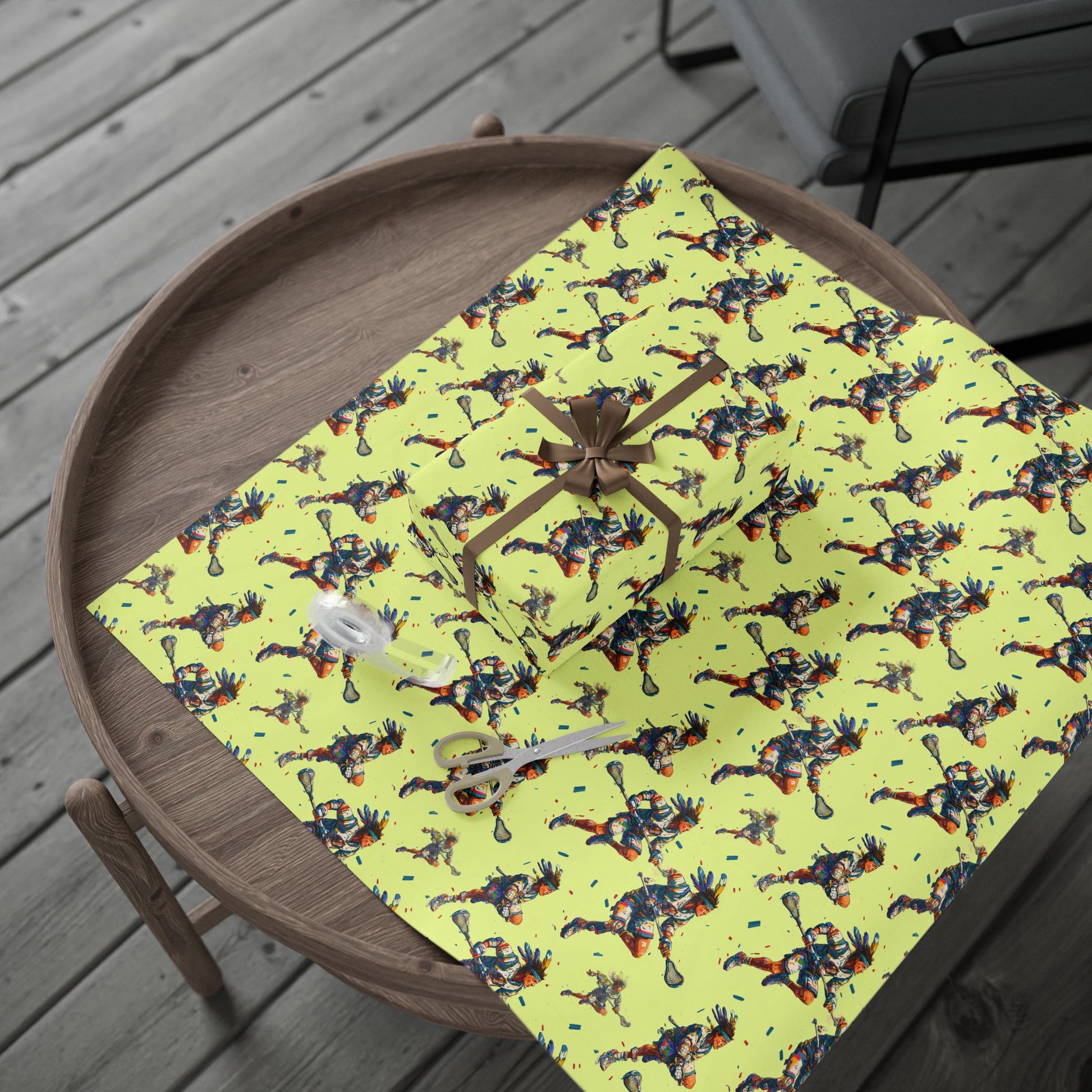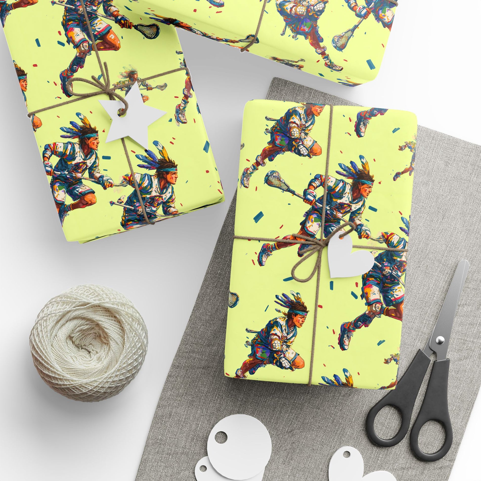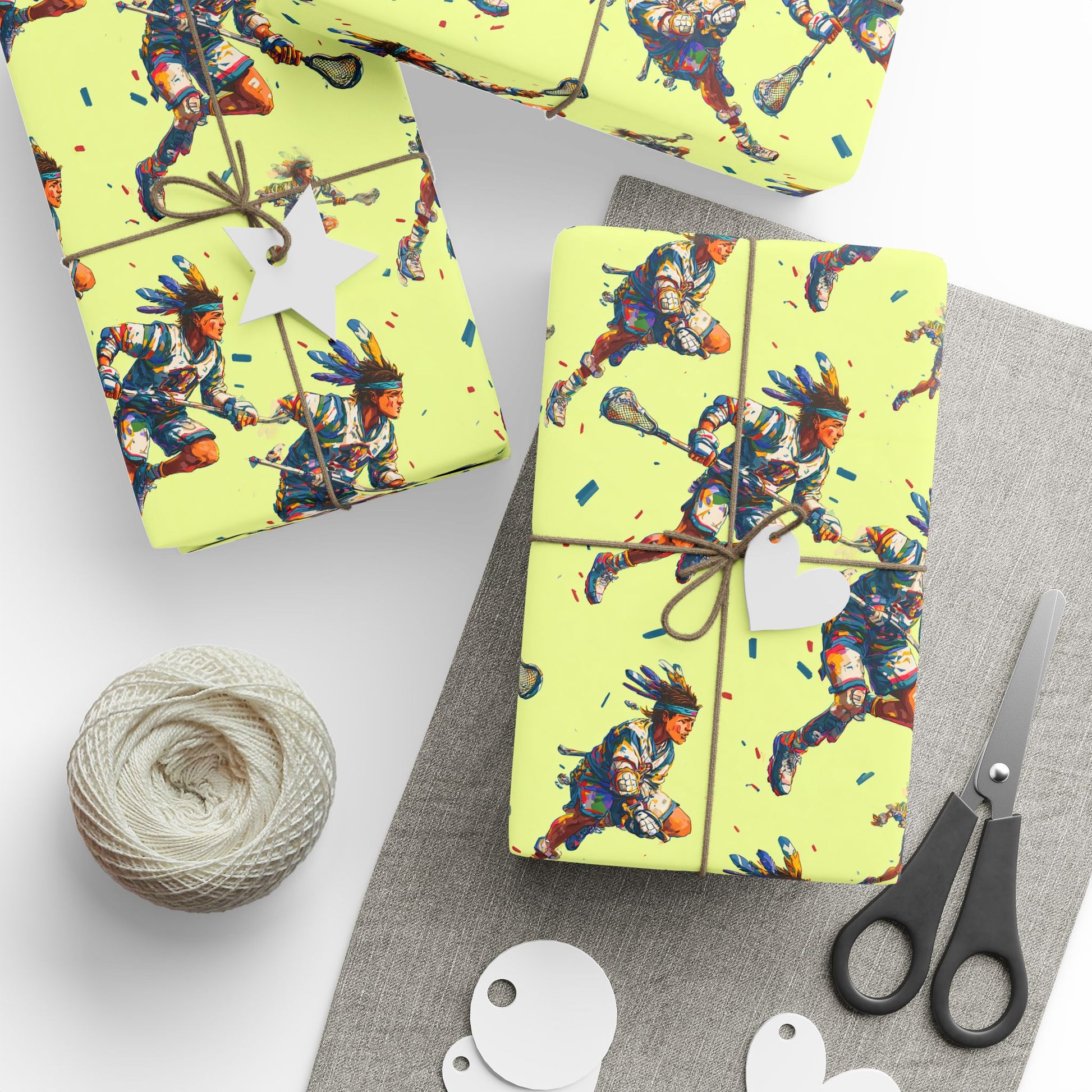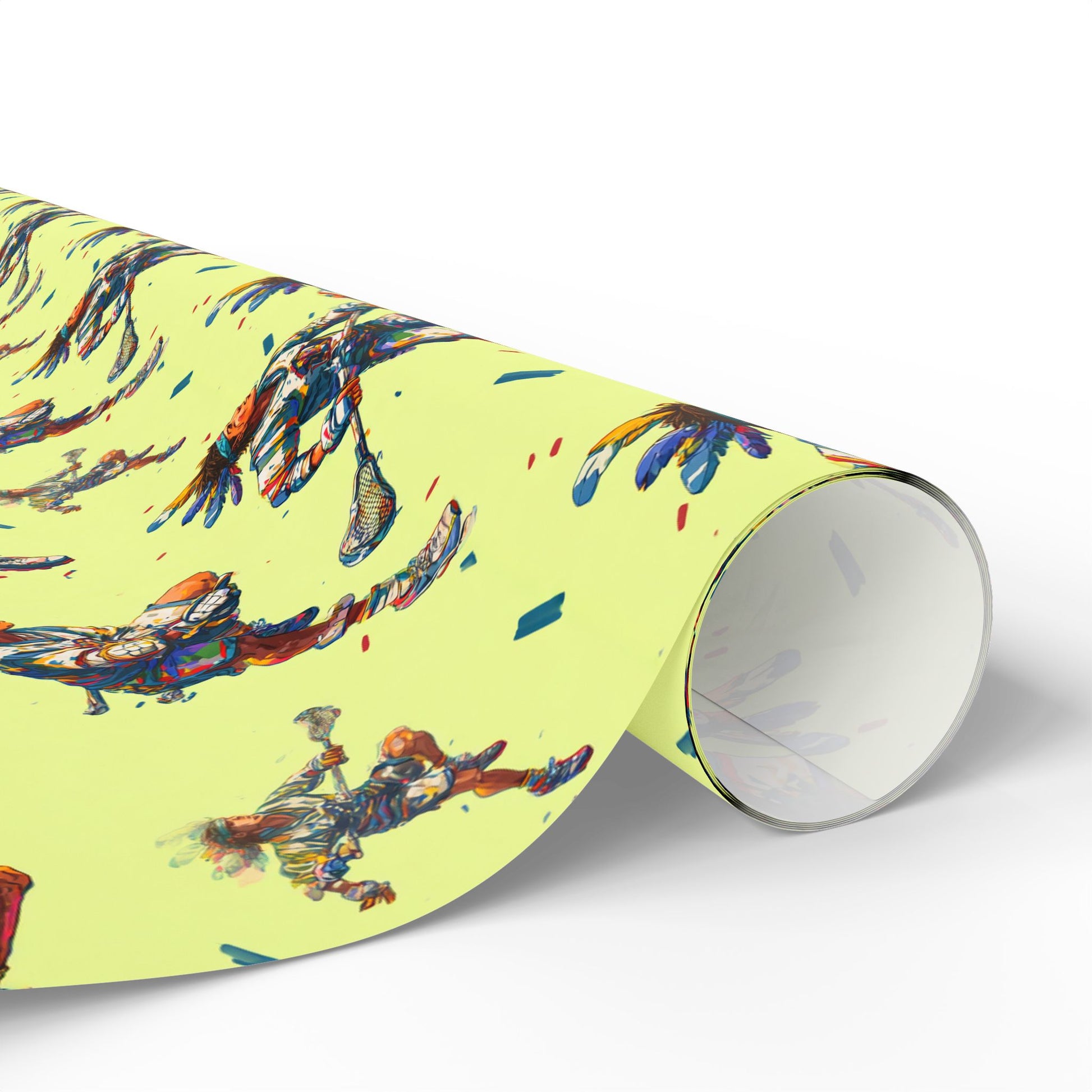 Each athlete wears a feathered headband, blending traditional warrior symbolism with modern athleticism.